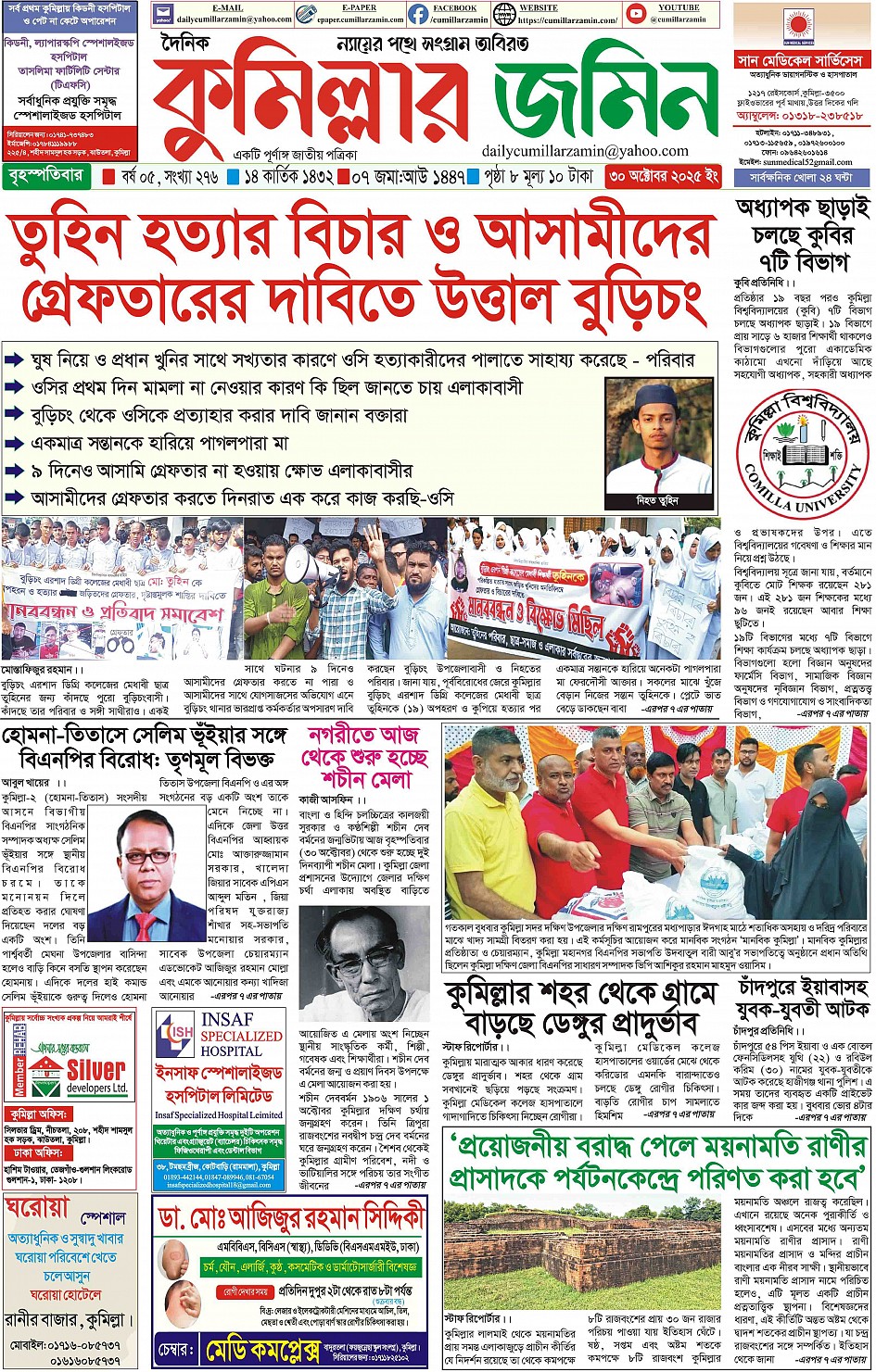 বৃহস্পতিবার, ৩০ অক্টোবার ২০২৫, ১৫ কার্তিক ১৪৩২