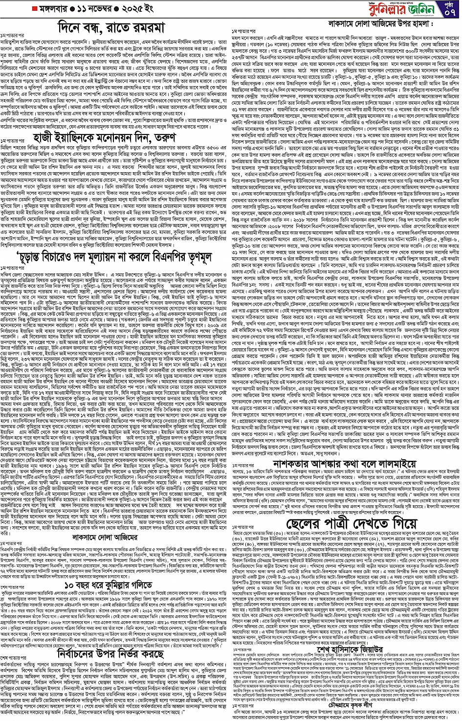 মঙ্গলবার, ১১ নভেম্বার ২০২৫, ২৭ কার্তিক ১৪৩২